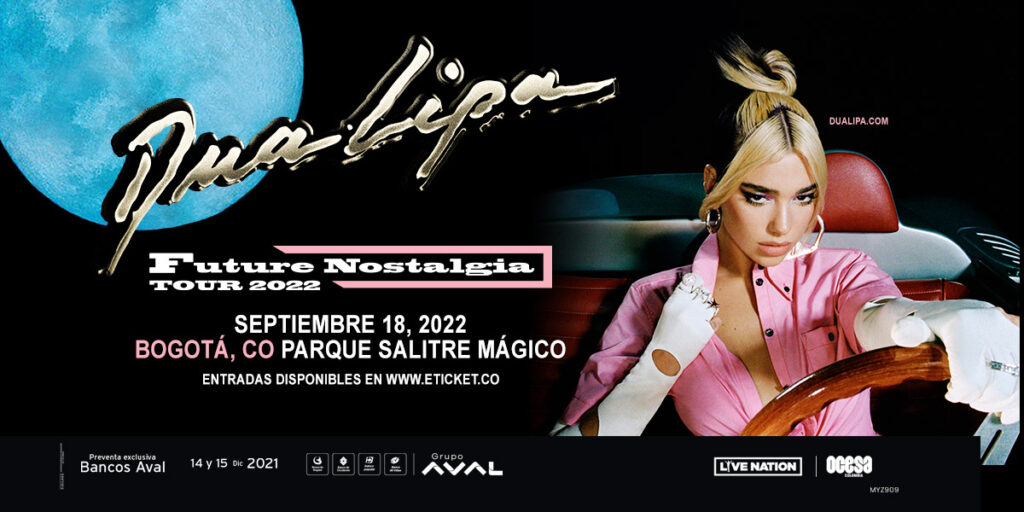 Luego de anunciar las nuevas fechas de su gira mundial “Future Nostalgia”, la estrella mundial del pop Dua Lipa, se presentará en Bogotá en El Parque Salitre Mágico. Promocionando su exitoso álbum de estudio ganador del Grammy 2021 al mejor álbum pop, el encuentro será el 18 de septiembre del 2022, con uno de los shows más grandes que se esperan para el próximo año, para volver a bailar y celebrar juntos de nuevo bajo las estrellas.